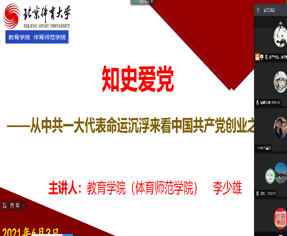 培训会上,李少雄书记以《知史爱党:从中共一大代表命运沉浮来看中国共产党创业之艰》为题,开展了一堂以点带面、生动的专题党史培训讲座。他结合自身学习体会,从“中国共产党一大代表概览”“中国共产党一大代表生平”“‘意外’的缺席者:‘南陈北李’”“中国共产党一大代表命运”和“小结与思考”五个部分进行了深入剖析与解读。重点讲解了中共一大的召开过程、参会13位代表的命运沉浮及其产生的原因,同时也向参会师生们解答了为何将党的生日定在每年的7月1日,为何作为共产党发起人的陈独秀、李大钊会缺席中共一大会议等党史具体问题。通过讲座,大家对一大参会代表的命运有了更深刻的认知。1921年后,13位代表中有4人牺牲,有7人脱党或被党开除,从头走到尾的只有毛泽东和董必武,他们信念坚定、矢志不渝,历经挫折、绝境逢生,最终登上天安门城楼,成为新中国的缔造者。