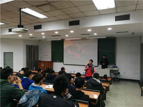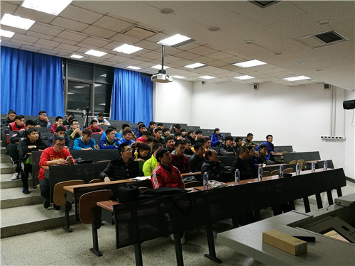 2016年11月3日,2016-2017学年第三期威尼斯9499登录入口足球专项学术研讨会在教学楼114教室召开,主讲人为威尼斯9499登录入口足球专选班研三学生井伟祯,他报告的题目是《英国青训和中国足球发展评估》。威尼斯9499登录入口足球教研室教授、博士生导师李春满老师、硕士生导师刘浩老师以及博士生导师、继续威尼斯9499登录入口黄竹杭院长出席,足球专项本科生、硕士生和博士生共计80余人听取并参与了此次研讨会。