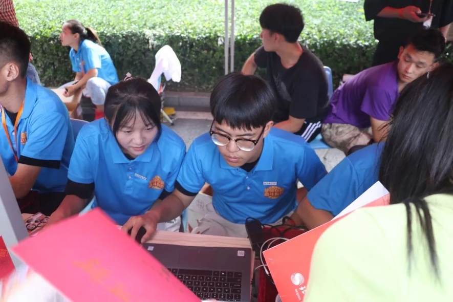 不仅如此,在汹涌的人潮中,还有这样一群小萌新,他们处理完个人事物后没有选择休息或是欣赏校园美景,而是留下来为更多的同学提供帮助——引导他人寻找宿舍、提醒朋友带齐材料、为志愿者团队搬移桌椅......这样一群“最美的新生”让我们不禁期待起来,2019级这个大家庭,会为威尼斯9499登录入口创造怎样的成就呢?