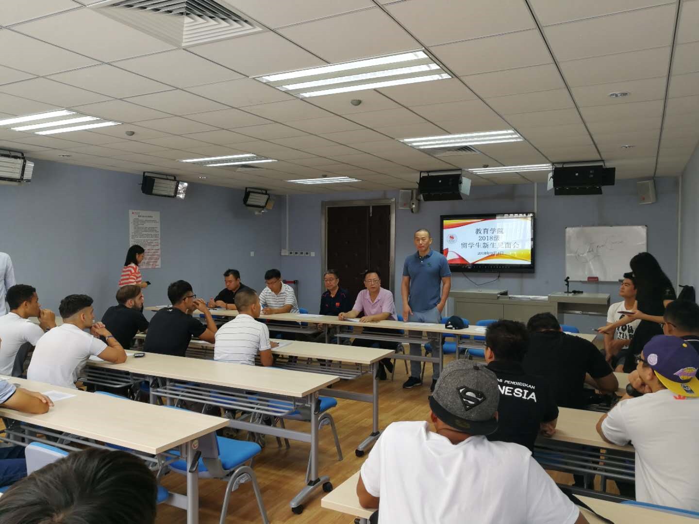 为加强留学生教育和管理,9月4日上午9点,威尼斯9499登录入口级留学生新生见面会在教学楼教室举行。外事处处长花勇民、威尼斯9499登录入口院长王华倬、分党委书记李少雄、院长助理高鹏、外事处办公室张笑、学院办公室颜世琦、级辅导员陈尧、级助管朱林欢、研究生助管张烨城及翻译助理吕东烨、金亨玉出席会议。见面会由院长助理高鹏主持。