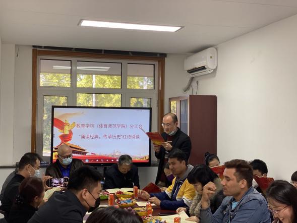 本次红诗诵读活动由学院分党委副书记李杰主持,选取了毛泽东、周恩来、朱德、习近平、方志敏等伟人的诗作,高强、陈尧、夏先明、郝东方、蔡娟、徐铁英等教师进行了朗诵。最后,在李少雄书记领读全体教职工共同诵读《可爱的中国》诗词中结束了活动。