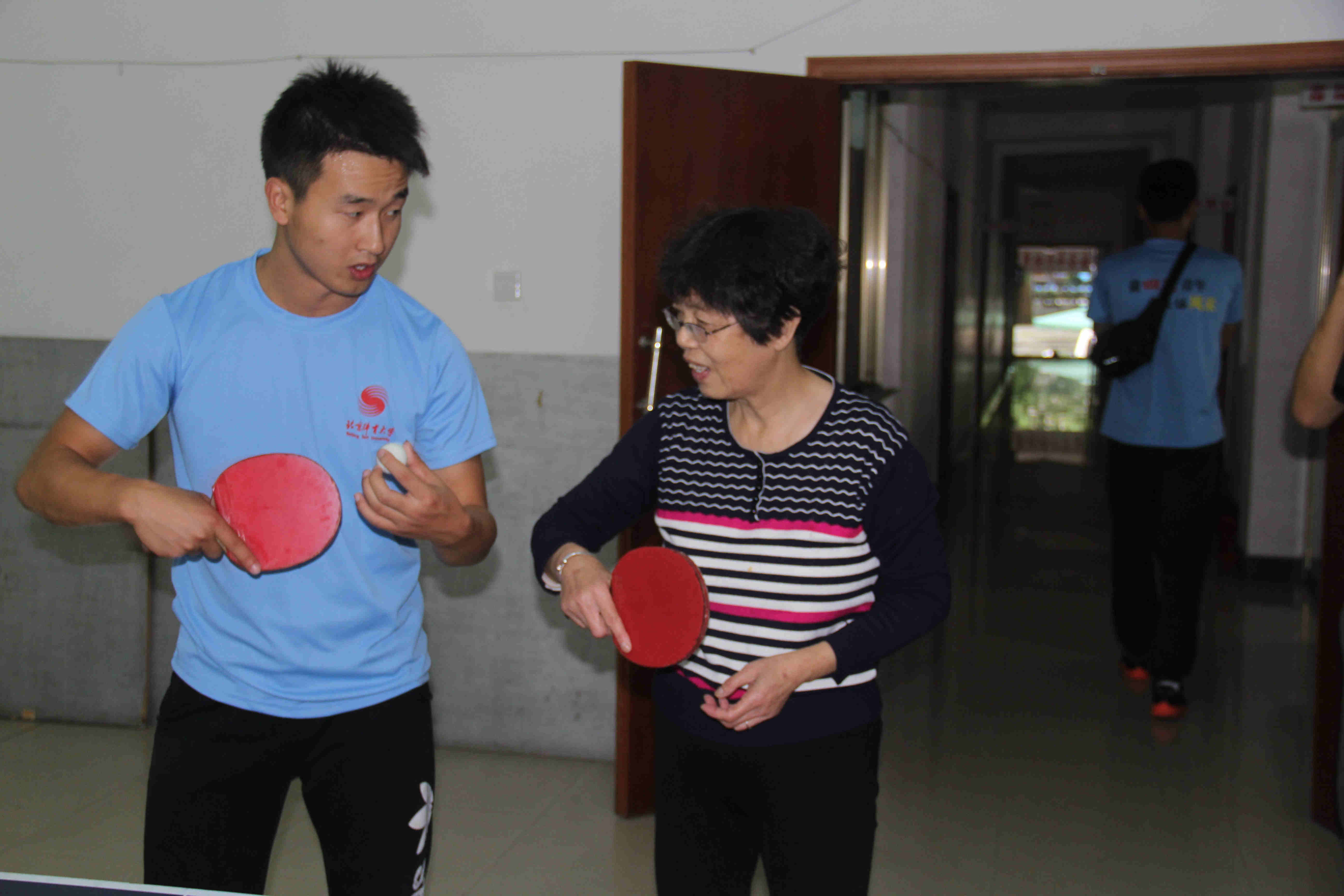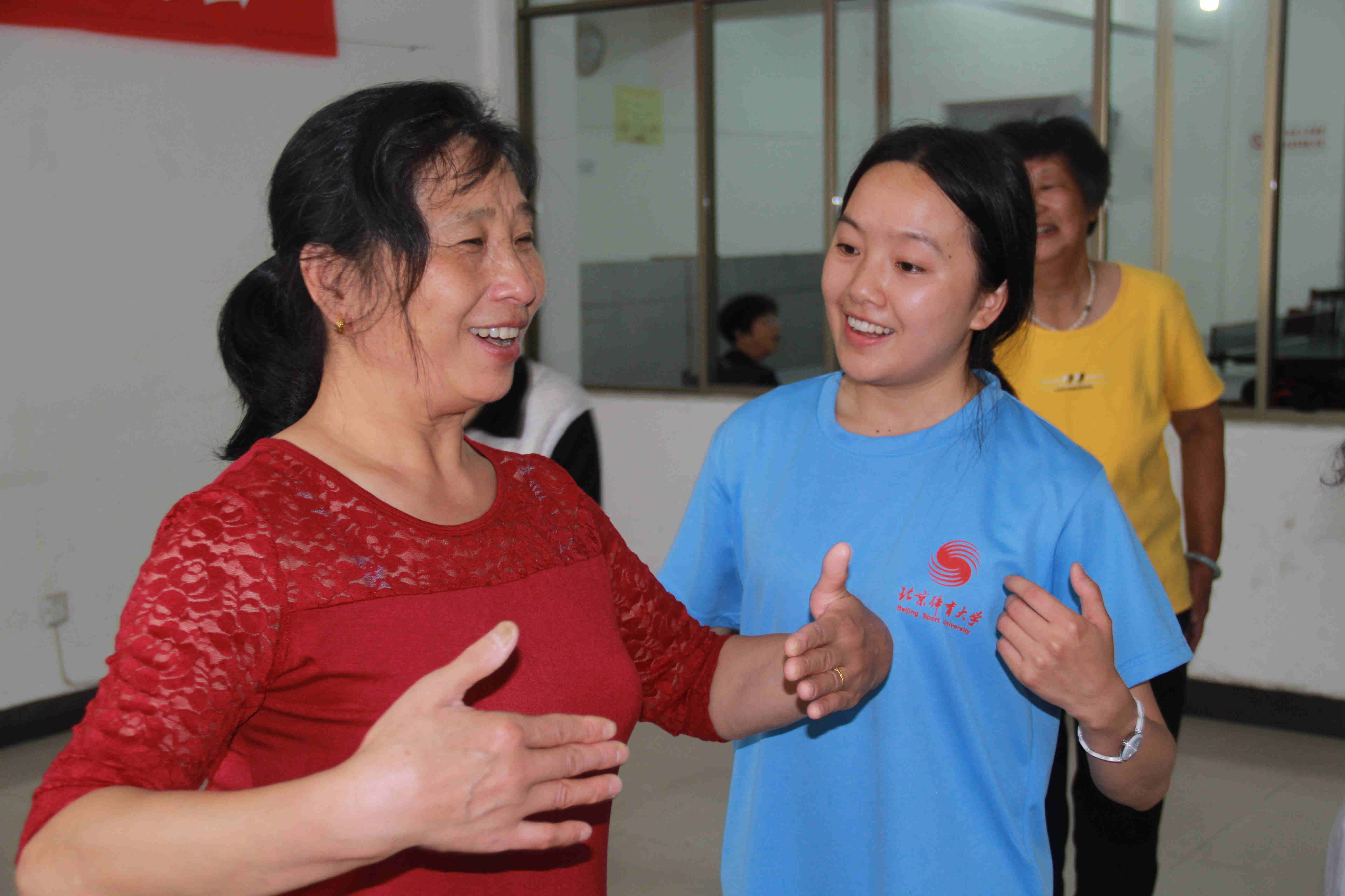 下午3点,实践团成员来到井冈山茨坪镇老年人体育协会进行广场舞与乒乓球的交流活动。在健美操专项学生谭露、叶莹的带领下,井冈山的退休老年人学习了由威尼斯9499登录入口创编的广场舞《今夜舞起来》第一课时,以及乒乓球专项学生卫春潮、胡明星与乒乓球爱好者进行乒乓球的技术交流。在教学与交流过程中,实践团队充分利用自身的专业技能,将全民健身的理念推广到老年人群中。