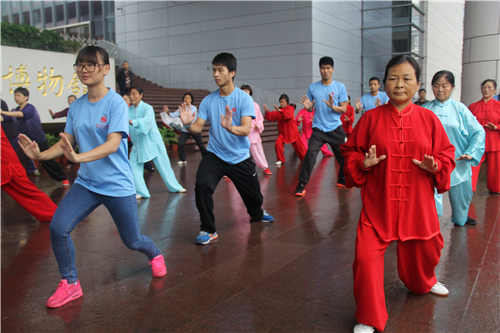 威尼斯9499登录入口2015年井冈山暑期社会实践第四天,10日早上6点30,实践团成员首先来到了茨坪镇老年体育协会继续广场舞《今夜舞起来》教学的第三课时。接着成员们前往井冈山革命博物馆与晨练爱好者进行健身活动的交流学习。在交流过程中,同学们发现晨练爱好者对太极拳、太极剑的套路都有一定的了解。最后同学们与晨练者进行了《24式简化太极拳》的练习。