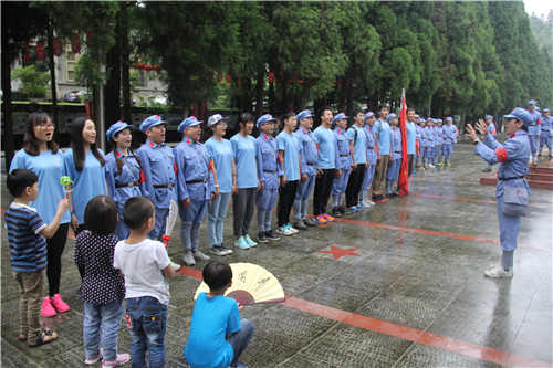 下午14点35,实践团成员来到了茨坪镇的红歌广场学习唱红歌。红歌广场的周围树立着许多石碑,石碑上雕刻了许多红军歌的歌词与歌谱。同学们在红歌广场上学习并集体合唱了《团结就是力量》、《十送红军》、《映山红》等革命歌曲。晚上,实践团观看了大型实景演出《井冈山》,演出分为序和五个乐章,依次为《血》、《旗》、《灯》、《情》、《火》、《路》。在名红军后代的叙述中展开,她告诉我们,在年前井冈山革命斗争的发生地,我们正站在先辈们的血泊和脚印上,重现他们惊天地、泣鬼神的峥嵘岁月。