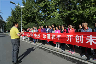 威尼斯9499登录入口党总支、分工会于九月二十三日上午十点在校综合馆门口举行了“纪念中国人民抗日战争暨世界反法西斯战争胜利70周年、迎接新中国成立66周年”健身长走活动。威尼斯9499登录入口全体教师参加了活动。