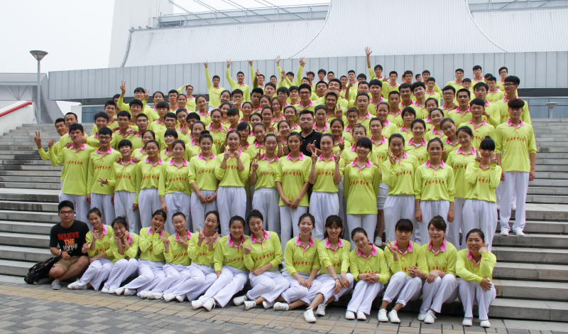 为了以优异的表现接受党和国家领导人的检阅,圆满完成此次开幕式广播操表演,威尼斯9499登录入口2013级的70名和2014级的90名同学们在思想高度集中,服从学校的统一安排,从一个月前就开始刻苦练习。在学院书记聂伟老师和辅导员丁冬云、陈尧老师的陪伴督促下,同学们克服了酷暑和临近期末考试的困难,坚持每天出早操练习,每周三和其他院系的同学们合练。一次次的练习和磨合,筛选出130名上场队员和20名候补队员,最终通过大家的努力和坚持以及丁冬云老师严格的训练,同学们的动作越来越齐,信心越来越足。