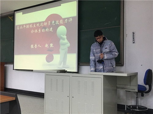 本次共有18名师生参加论文报告,首先是学生组的8位同学进行论文报告,然后教师组的10位老师进行论文报告。本次科报会的18篇论文涉及了运动员技战术的分析、教学理念的研究、运动员评价体系的建构、运动规则的研究等方面的问题。报告者借助精美的PPT以及相关视频在8分钟内呈现自己的研究成果,语言通俗易懂,着装大方得体。评审专家从论文选题、研究方法、研究结论、论文报告等方面给论文作者提出宝贵的意见和建议,帮助老师和同学们进一步思考和更好的完善自己的研究。
