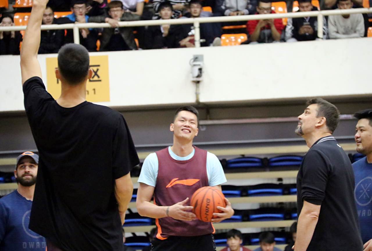 本次活动于下午14:30正式开始,进行一系列热身、半场基础配合、定点投篮等练习。各位老师以及在场的校男篮代表队,本科与研究生同学全程观摩了训练。