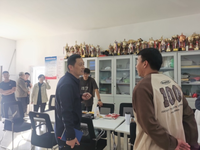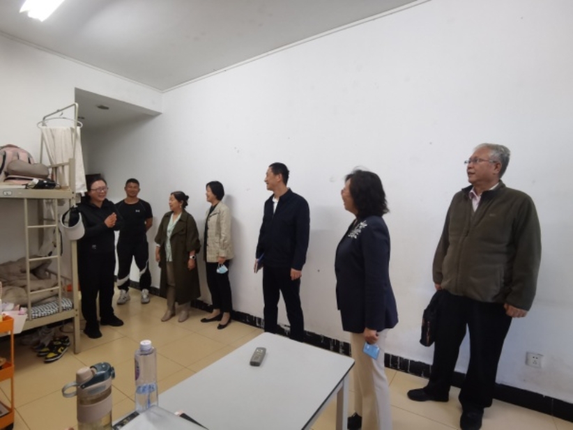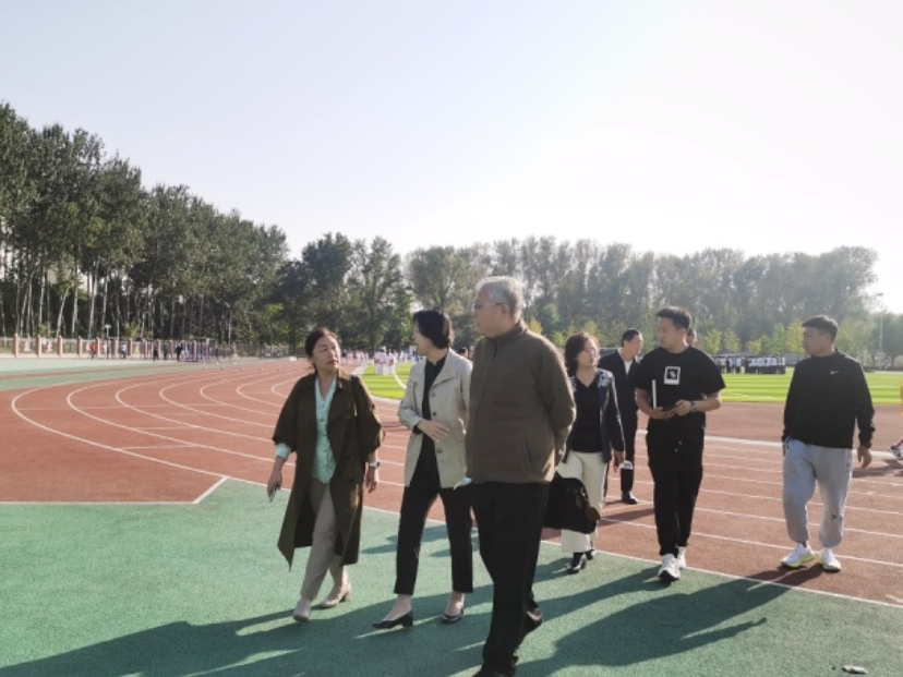 座谈会后,教务处和学院领导一行前往学校场馆及操场观摩实习学生课堂并前往实习学生办公室及宿舍看望实习学生。