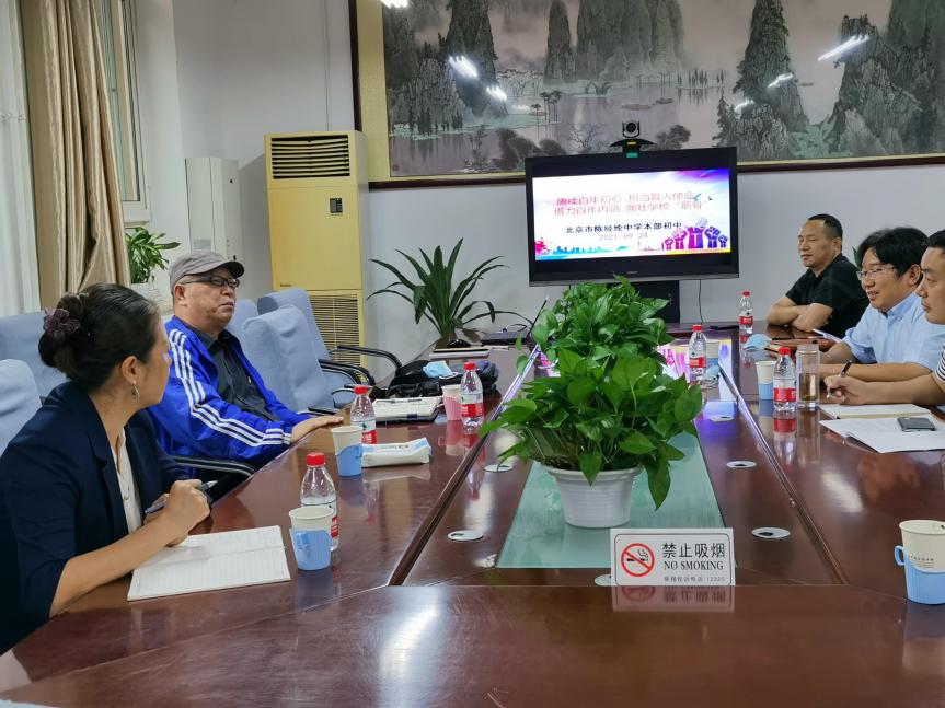2021年9月24日下午,威尼斯9499登录入口王华倬院长、刘昕副院长和张凯教授一行前往北京市朝阳区陈经纶中学本部初中部,与陈经纶教育集团高中部王琦副校长以及初中部王浩校长、程木昌书记等人,就威尼斯9499登录入口在陈经纶中学设立实践基地等问题进行了沟通洽谈。