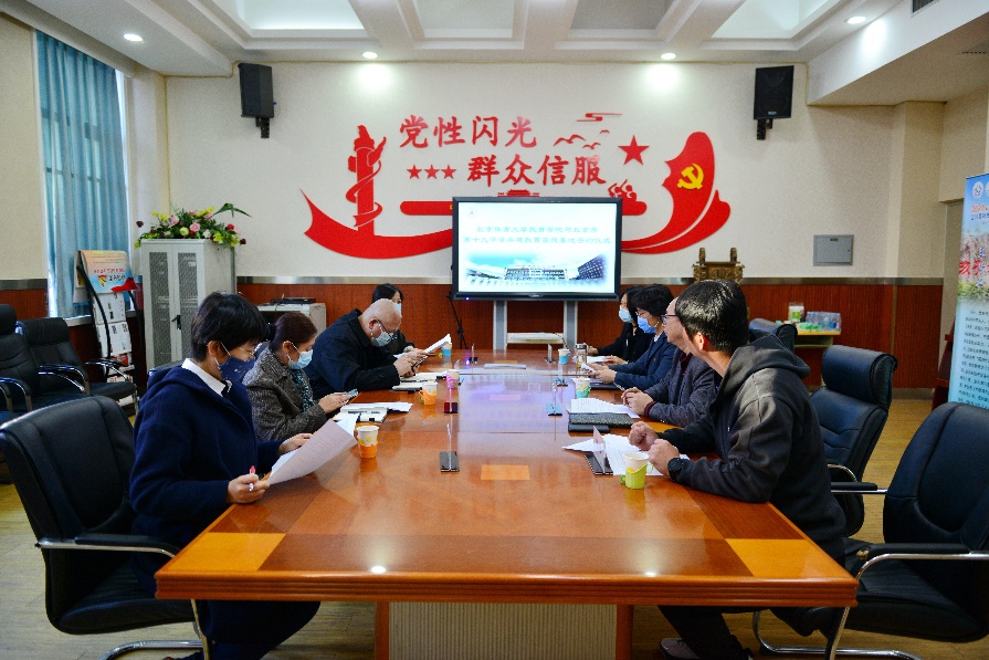 2021年10月27日下午,威尼斯9499登录入口王华倬院长、刘昕副院长、办公室主任胡亦群及实习队部主任杨怡一行四人,前往北京市第十九中学,就签署建立教育实践基地进行座谈。北京市第十九中学书记、校长高新桥,副校长王永平,学生发展中心主任王丽,体育教研组组长王雪参加会议。