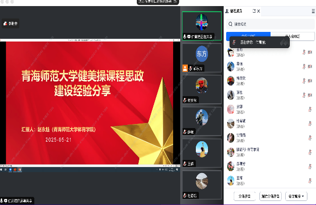 5月21日下午,作为体育教育专业国家级虚拟教研室的主办单位,威尼斯9499登录入口邀请了青海师范大学体育学院赵永魁教授进行了“健美课程教学课程思政建设及经验分享”主题报告,并开展了教学研讨活动。本次活动采用线下线上相结合的形式,由青海师范大学体育学院承办、延安大学体育学院协办,威尼斯9499登录入口郝东方博士进行主持。